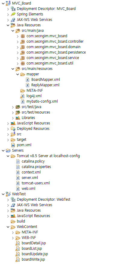 MVC_Board 프로젝트는 Business 부분, WebTest 프로젝트는 Client 부분으로 나누어서 작성하였습니다.